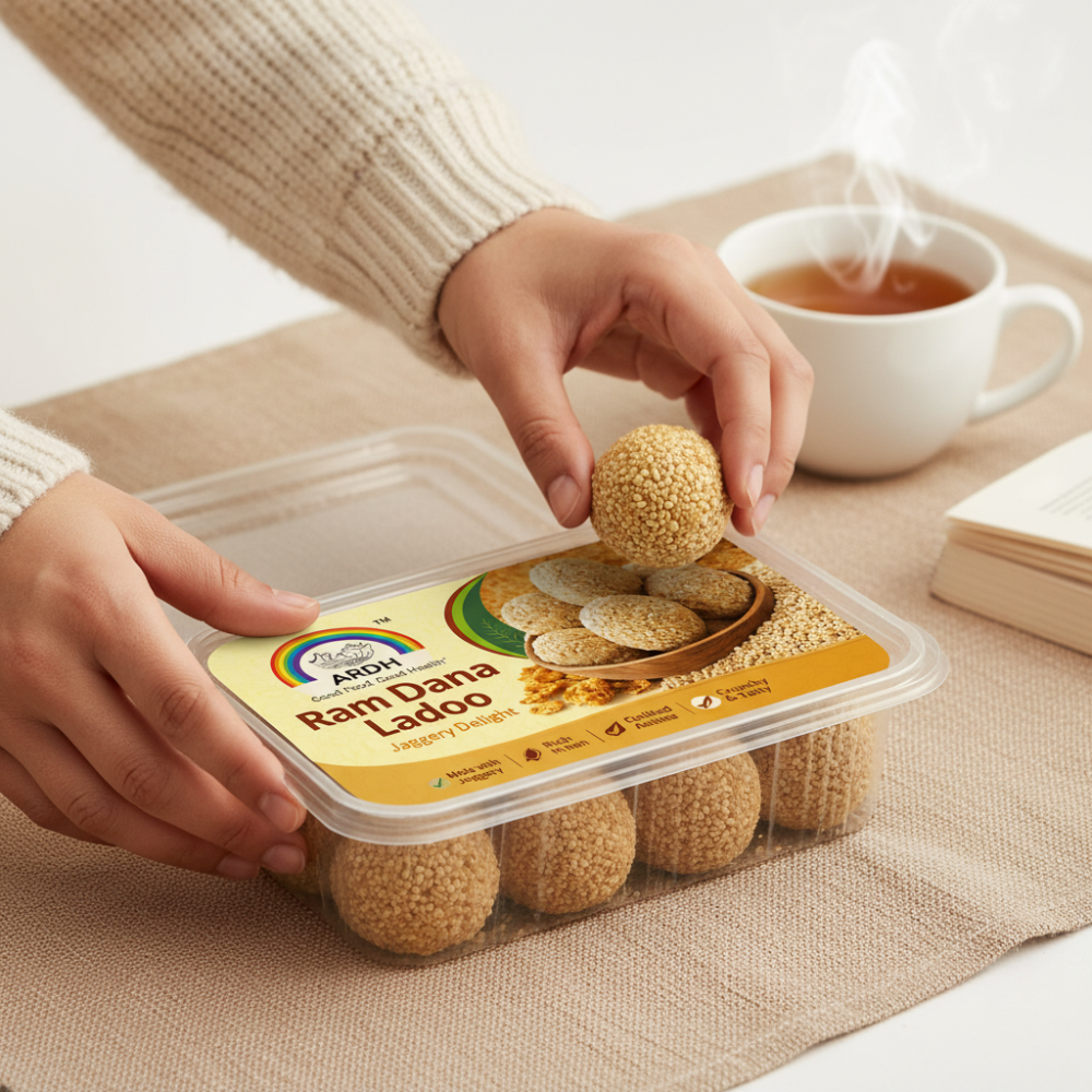 Ardh Gaya Ji Ramdana Lai, by Deep Ragni Multifood Mill Pvt. Ltd., is a traditional Bihari sweet made from popped ramdana (amaranth) seeds, blended with rich khoya and sweetened with sugar or jaggery. Light, crunchy, and naturally nutritious, it is a festive delicacy known for its authentic taste, cultural heritage, and wholesome goodness.